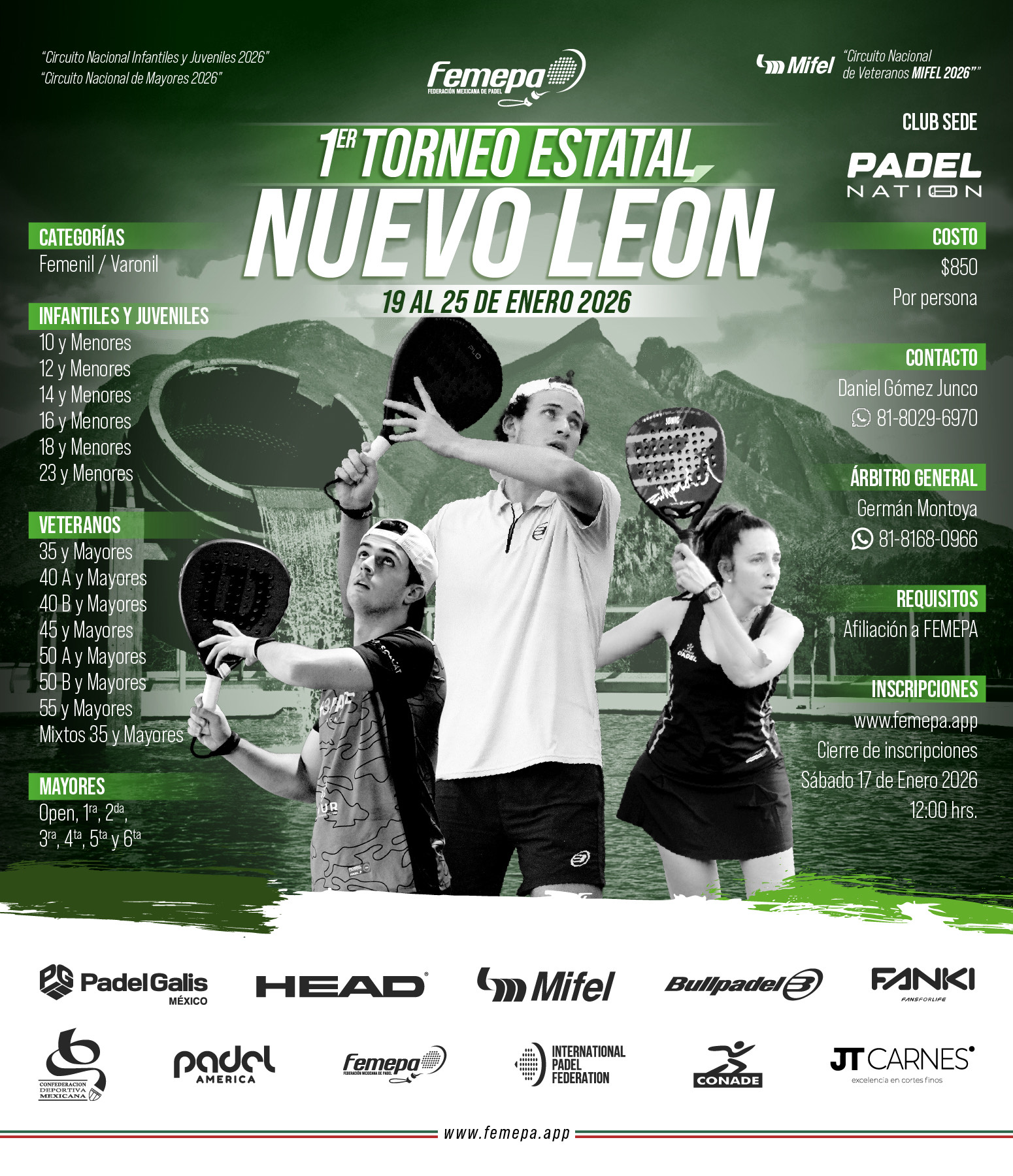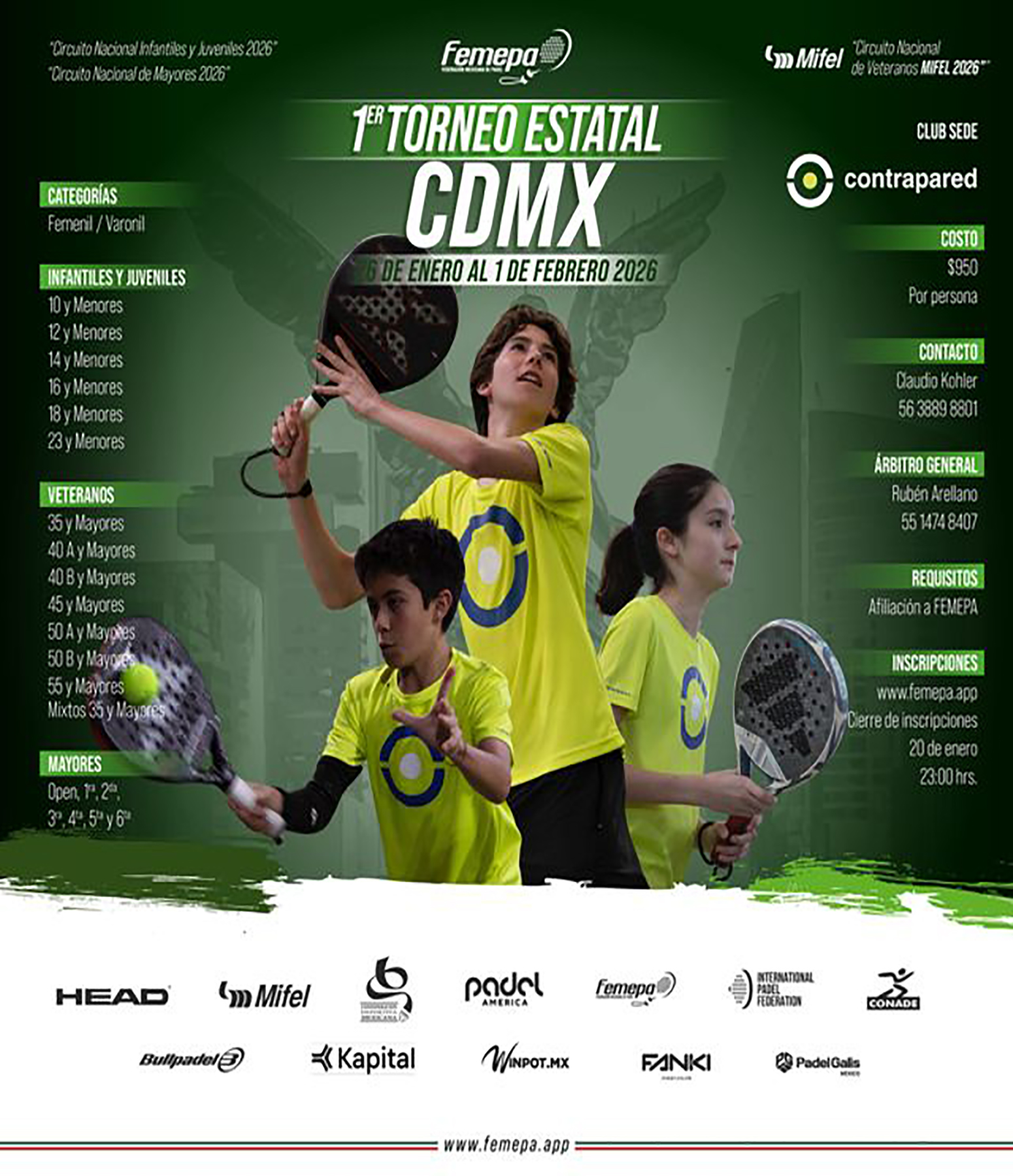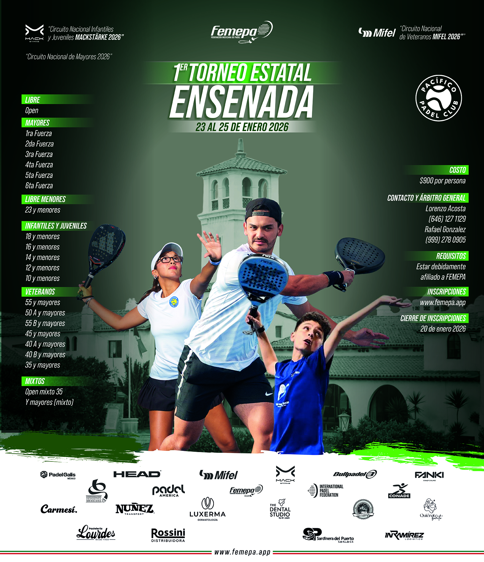 Este contrato describe los términos y condiciones generales (en adelante los "TCG") aplicables al uso de los servicios ofrecidos por FEDERACION MEXICANA DE PADEL A.C. (en adelante la "Sociedad") dentro de el Sitio femepa.app. Tanto la página web como la Sociedad serán identificadas conjuntamente como “femepa.app”. Cualquier persona que desee acceder y/o usar femepa.app o los Servicios (el “Usuario”) podrá hacerlo sujetándose a los TCG, junto con todas las demás políticas y principios que rigen femepa.app y que son incorporados al presente por referencia.